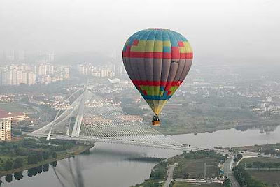 A hot air balloon floats over Malaysia's landmark Seri Wawasan Bridge in administrative capital of Putrajaya outside Kuala Lumpur February 5, 2009. Putrajaya will host the 1st Putrajaya International Hot Air Balloon Fiesta from March 19 to 22, 2009.